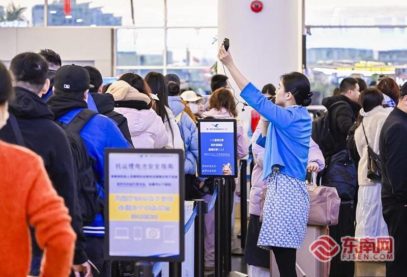 同样是“春运新人”的,还有厦航本部管培生罗泫陈。去年9月刚入职的他,正在地服部门轮岗,今年报名了春运志愿服务。行李托运、打印登机牌、引导晚到旅客走快速通道,有旅客上前咨询时,他总能笑着快速回应。此次春运,厦航团委动员了14个机关职能单位的青年志愿者奔赴一线厦门-北京大兴航班的客舱里,乘务员张聪正弯腰整理座椅。这是他第八年春运,提起感受,他脱口而出:“紧张,每一次都像第一次。”紧张的是安全责任,是每一位旅客的托付。“乘务员的常态,就是不能在家过年。”他直起腰,透过舷窗看向候机楼里的人群,“但能陪着这么多旅客回家,看着他们团圆,我认为很值得。”